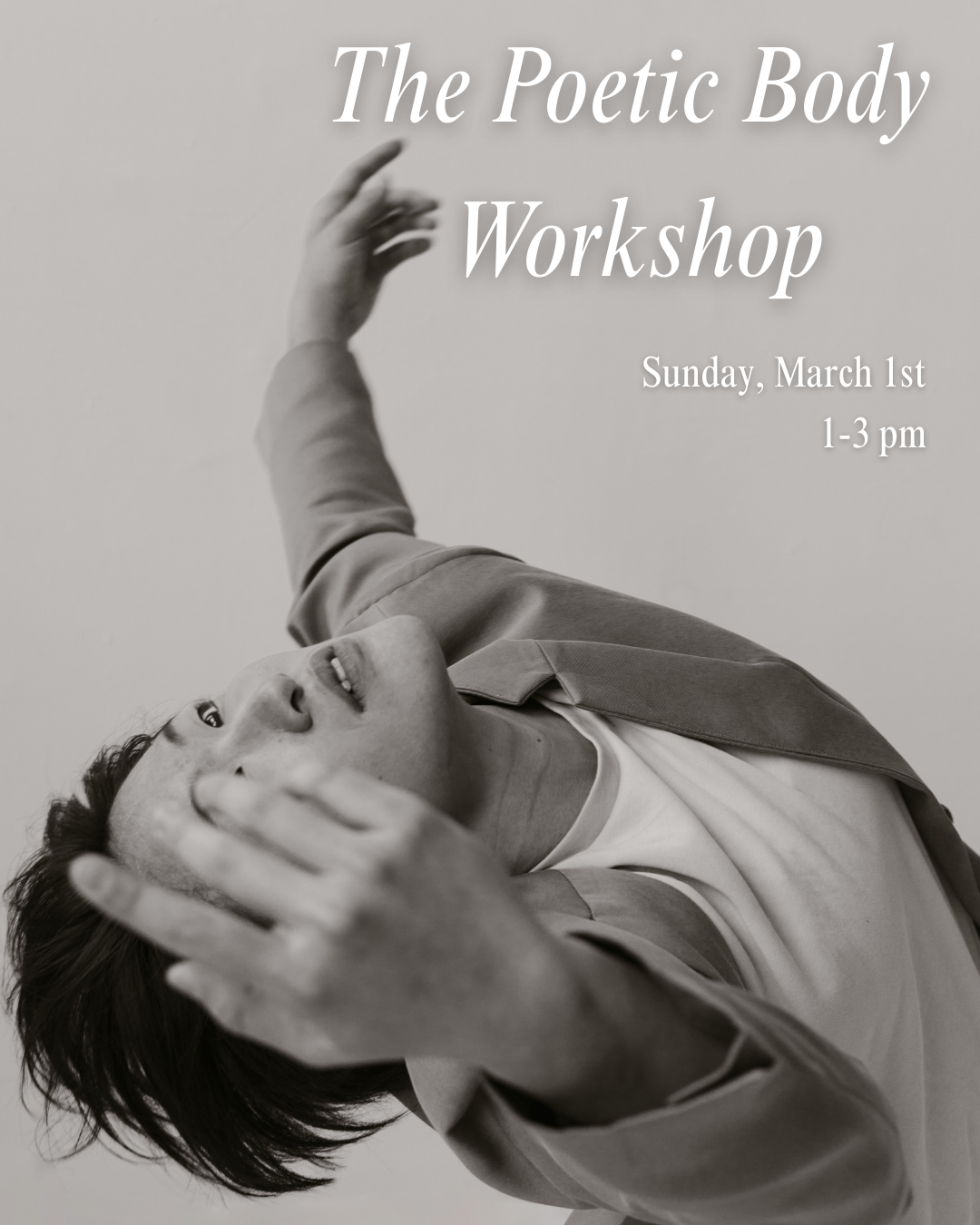 Save the date for Chih-Jou Cheng’s Poetic Body workshop, March 1st, 1-3pm. Learn more and register here!